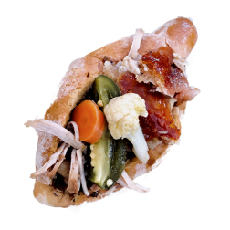 Pan que es relleno de cerdo (coloquialmente llamado “cuche”), especias, chile guajillo, verduras y cocido en horno de barro. ¡Una delicia!